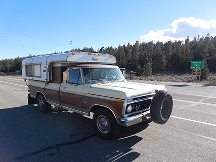 I had been working off the list that Robbie and I had made of stuff that needed to be tweaked around his house. For example, he had a fairly new clothes drier that had no heat, so he was drying clothes by blowing cold air on them – for HOURS! Fixing that was my favorite thing, but I knocked out a lot of things on the list and then got to work on the truck. I decided that a tune up was in order and got to work on that. I put all the parts in in the most workmanlike manner and went to start it and – nothing. She wouldn’t fire up. This does not engender confidence in a mechanic; I’ve tuned cars since I was twelve, so I was not pleased. To make a very long story shorter, remember when the rig caught on fire in Florida? Well, it turns out that the insulation on the main wire to the distributer had melted, and just the moving around of stuff during the tune up was enough to break the compromised insulation off and short the wire out.  It was hidden of course, so it took me a while to figure that one out. I did a bunch of other stuff to the truck, like get all of the running lights on the camper going and so forth, making new springs for the lights out of repurposed springs from ball point pens. There were a bunch of other things that I got done which I won’t bore you with, but the rig seemed good to go. Robbie was heading out to Florida for a veterinary conference, and I planned to leave a few hours later, once I finished packing everything. So I fire up the rig, put it in gear and under power, well, there is none. I couldn’t make it to the end of the driveway. A very inauspicious beginning to the final push! So I got the trusty extra bicycle that Robbie had let me use after I cut the tree down that was growing through it, and rode the four miles to the auto parts store and bought a new coil and rode back and installed it. That finally finished the tune up and I got on the road the next morning towards Colorado.